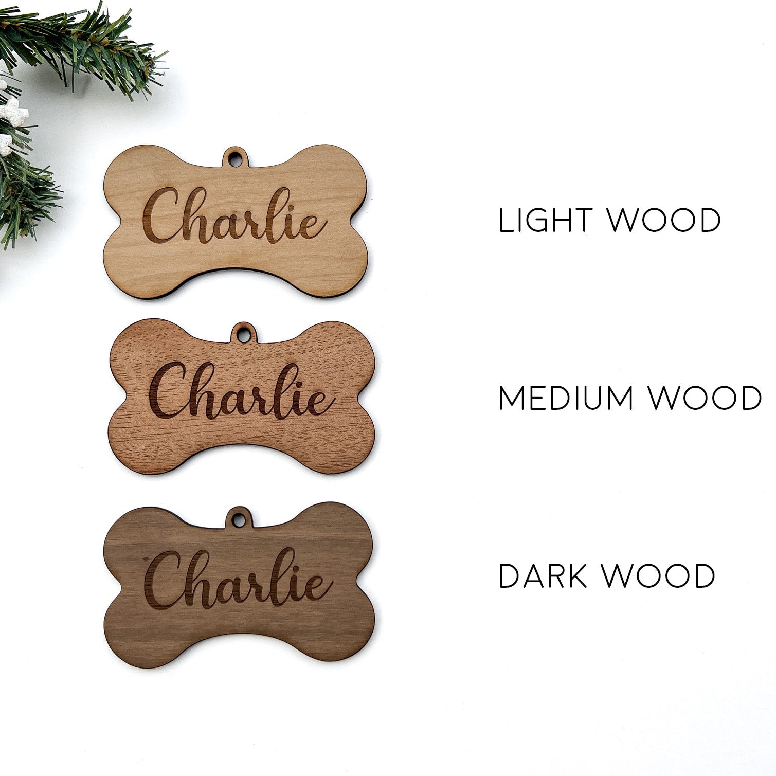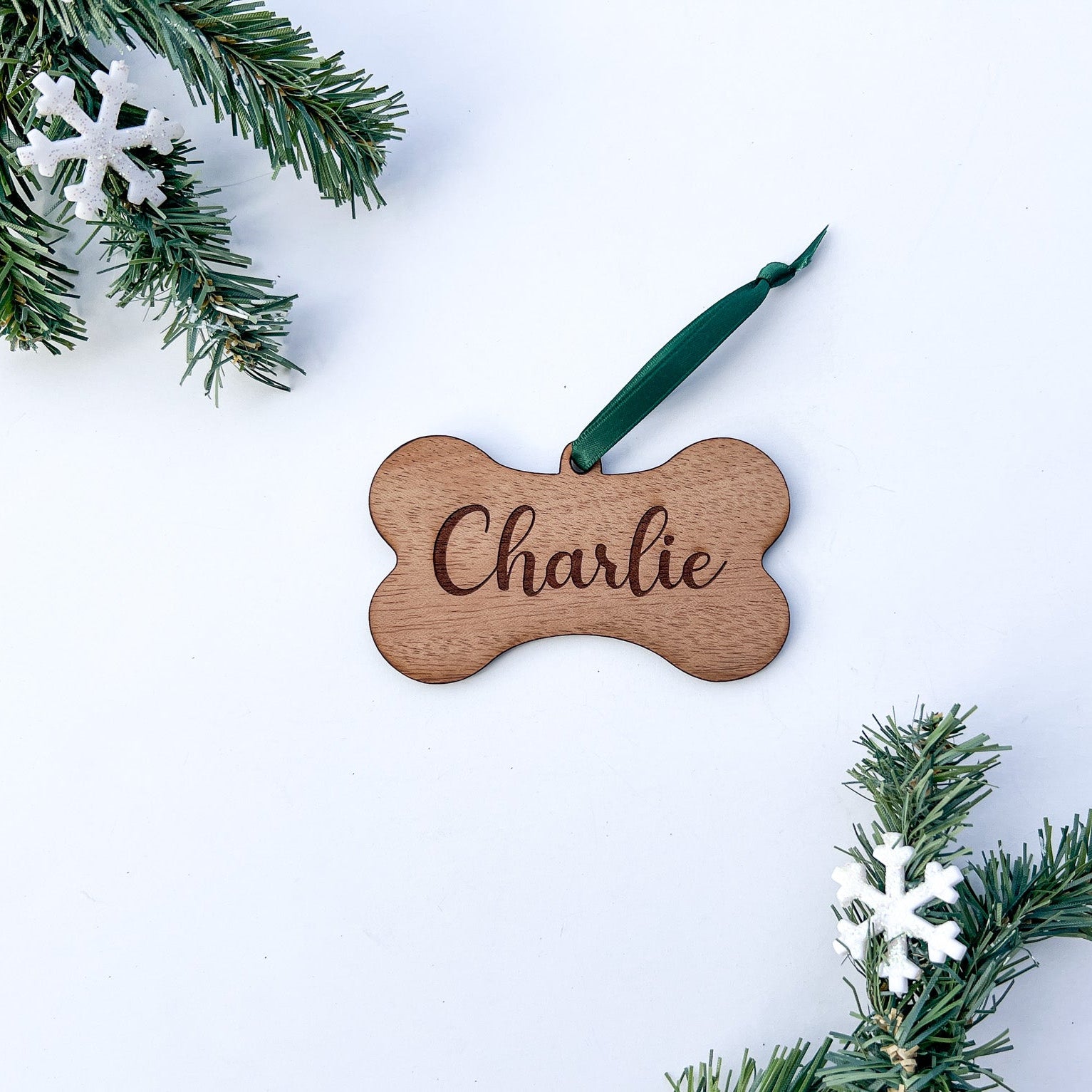 Engraved Wooden Dog Bone Ornament