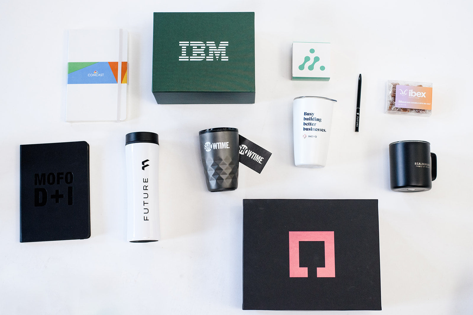 We're your one-stop shop for anything and everything branded. Let us source your swag, company merch, and promotional goods. We can complete it with custom packaging, ship in bulk to your event or HQ, or even store it to ship out on demand.