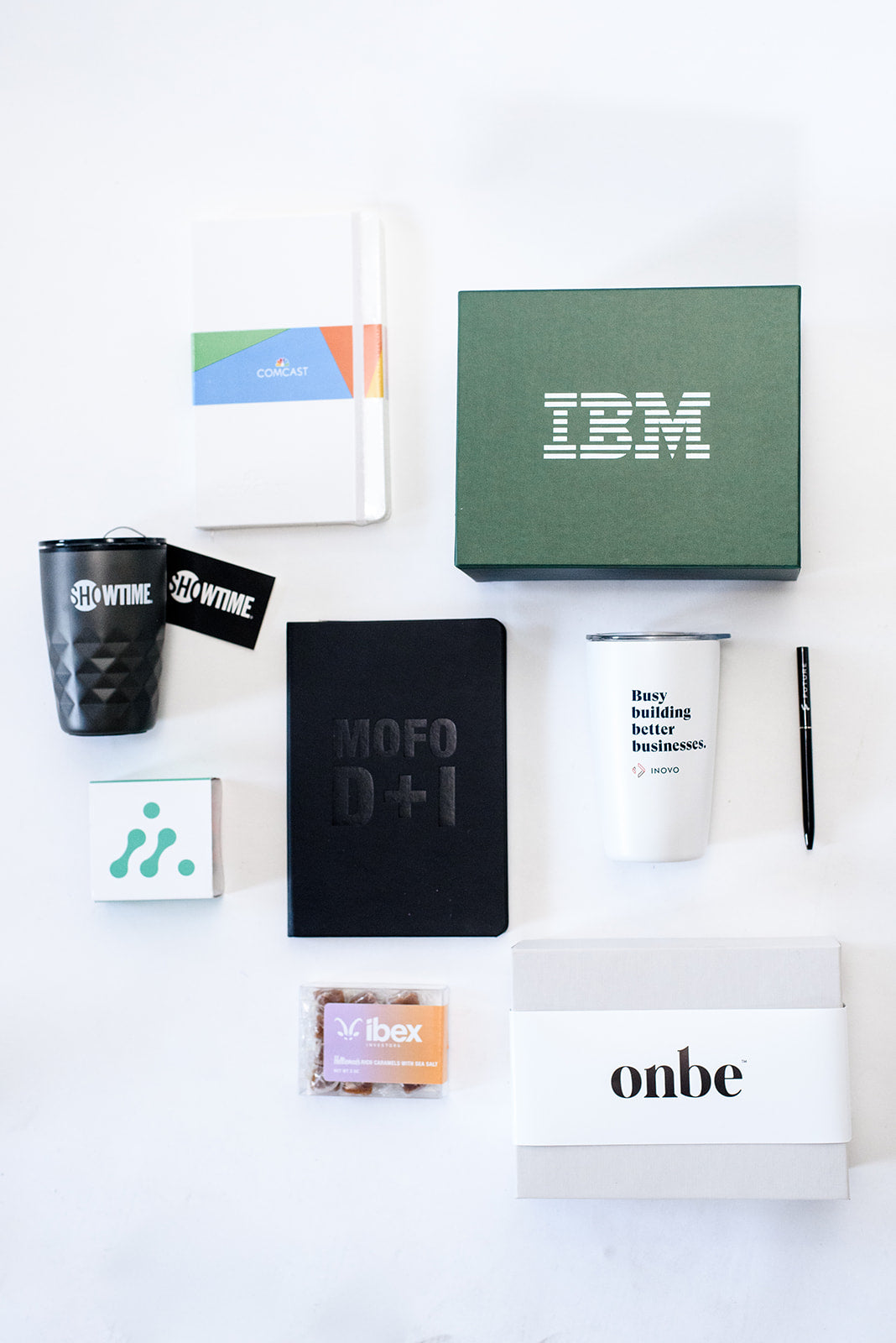 We're your one-stop shop for anything and everything branded. Let us source your swag, company merch, and promotional goods. We can complete it with custom packaging, ship in bulk to your event or HQ, or even store it to ship out on demand.